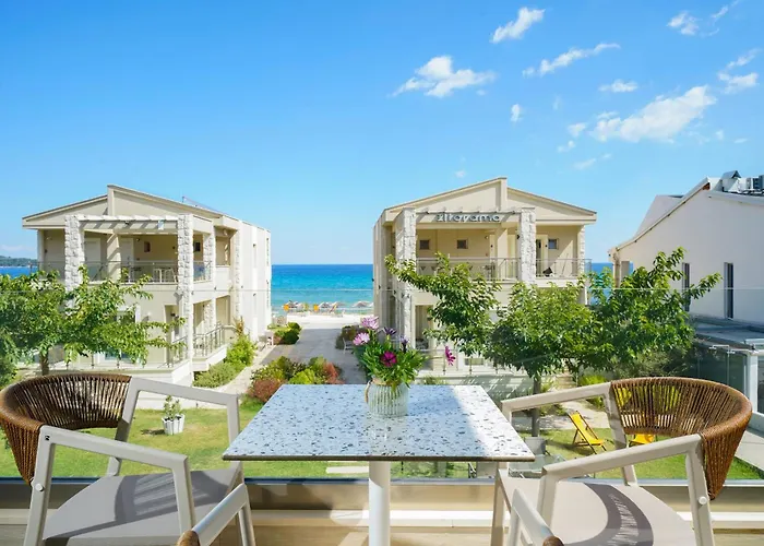 Das Hotel Iliorama Luxury Suites Skala Potamia bezaubert mit einem Ausblick auf der Garten und liegt unter anderem nur 1 km von der Skala Potamia entfernt.